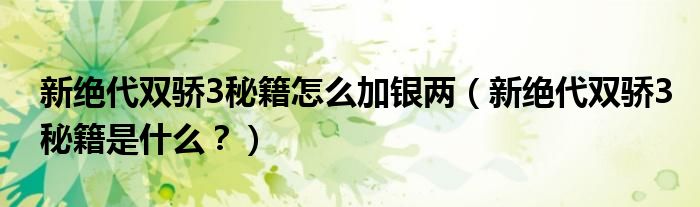 大家好,小安來(lái)為大家解答以上問(wèn)題。新絕代雙驕3秘籍怎么加銀兩,新絕代雙驕3秘籍是什么?很多人還不知道,現(xiàn)在讓我們一起來(lái)看看吧!