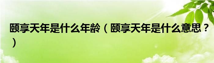 大家好,小安來為大家解答以上問題。頤享天年是什么年齡,頤享天年是什么意思?很多人還不知道,現在讓我們一起來看看吧!