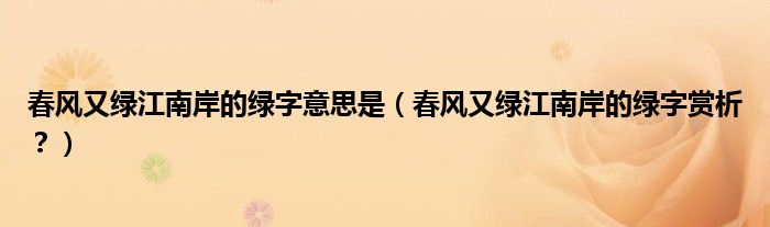 大家好,小安來為大家解答以上問題。春風(fēng)又綠江南岸的綠字意思是,春風(fēng)又綠江南岸的綠字賞析?很多人還不知道,現(xiàn)在讓我們一起來看看吧!