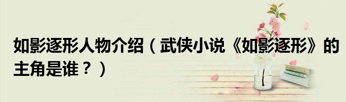 大家好,小安來為大家解答以上問題。如影逐形人物介紹,武俠小說《如影逐形》的主角是誰?很多人還不知道,現在讓我們一起來看看吧!