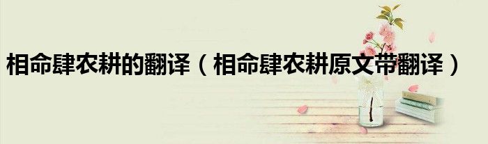 大家好,小安來為大家解答以上問題。相命肆農(nóng)耕的翻譯,相命肆農(nóng)耕原文帶翻譯很多人還不知道,現(xiàn)在讓我們一起來看看吧!