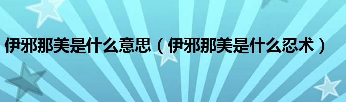 大家好,小安來為大家解答以上問題。伊邪那美是什么意思,伊邪那美是什么忍術很多人還不知道,現在讓我們一起來看看吧!