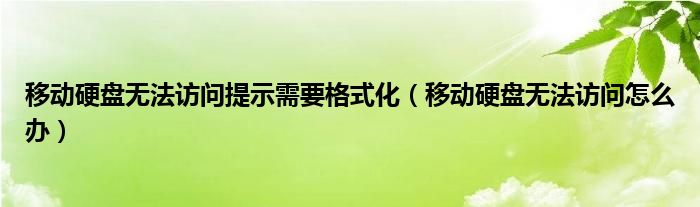 大家好,小安來為大家解答以上問題。移動硬盤無法訪問提示需要格式化,移動硬盤無法訪問怎么辦很多人還不知道,現在讓我們一起來看看吧!