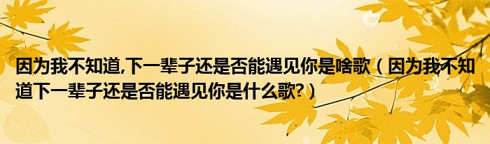 大家好,小安來為大家解答以上問題。因為我不知道,下一輩子還是否能遇見你是啥歌,因為我不知道下一輩子還是否能遇見你是什么歌?很多人還不知道,現在讓我們一起來看看吧!