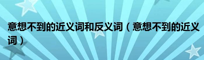 大家好,小安來為大家解答以上問題。意想不到的近義詞和反義詞,意想不到的近義詞很多人還不知道,現(xiàn)在讓我們一起來看看吧!