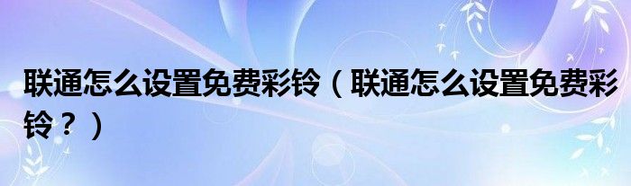 大家好,小安來為大家解答以上問題。聯通怎么設置免費彩鈴,聯通怎么設置免費彩鈴?很多人還不知道,現在讓我們一起來看看吧!