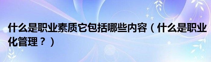 大家好,小安來為大家解答以上問題。什么是職業素質它包括哪些內容,什么是職業化管理?很多人還不知道,現在讓我們一起來看看吧!