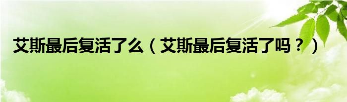 大家好,小安來(lái)為大家解答以上問(wèn)題。艾斯最后復(fù)活了么,艾斯最后復(fù)活了嗎?很多人還不知道,現(xiàn)在讓我們一起來(lái)看看吧!