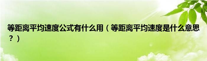 大家好,小安來為大家解答以上問題。等距離平均速度公式有什么用,等距離平均速度是什么意思?很多人還不知道,現在讓我們一起來看看吧!