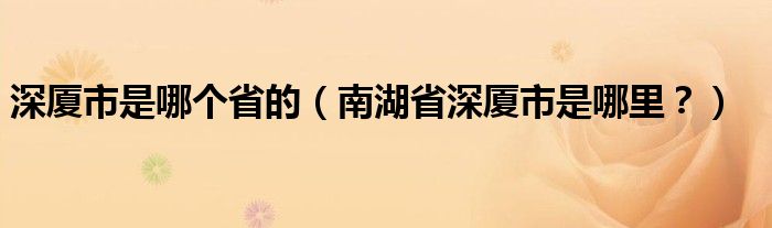 大家好,小安來為大家解答以上問題。深廈市是哪個省的,南湖省深廈市是哪里?很多人還不知道,現在讓我們一起來看看吧!