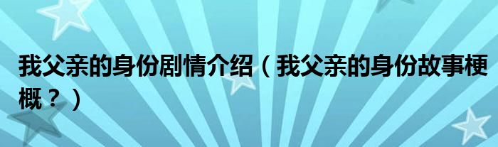大家好,小安來為大家解答以上問題。我父親的身份劇情介紹,我父親的身份故事梗概?很多人還不知道,現(xiàn)在讓我們一起來看看吧!