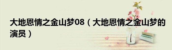 大家好,小安來為大家解答以上問題。大地恩情之金山夢08,大地恩情之金山夢的演員很多人還不知道,現在讓我們一起來看看吧!