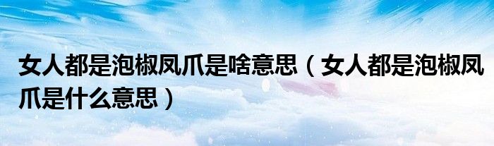 1、 女人都是泡椒鳳爪是什么意思泡椒鳳爪是什么梗,是一個(gè)網(wǎng)絡(luò)流行語,意思是女人無情,是“男人是大豬腳”的對應(yīng)詞。