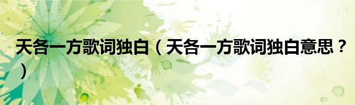 大家好,小安來為大家解答以上問題。天各一方歌詞獨白,天各一方歌詞獨白意思?很多人還不知道,現在讓我們一起來看看吧!