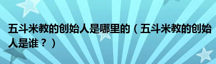 大家好,小安來為大家解答以上問題。五斗米教的創始人是哪里的,五斗米教的創始人是誰?很多人還不知道,現在讓我們一起來看看吧!