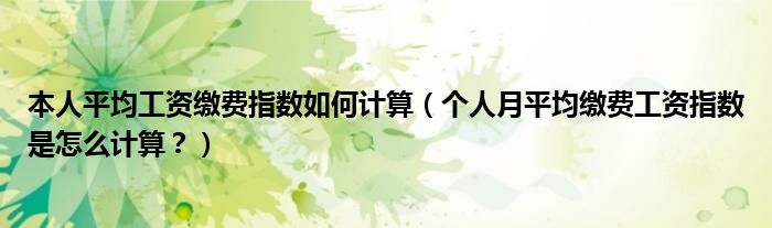 大家好,小安來為大家解答以上問題。本人平均工資繳費指數如何計算,個人月平均繳費工資指數是怎么計算?很多人還不知道,現在讓我們一起來看看吧!