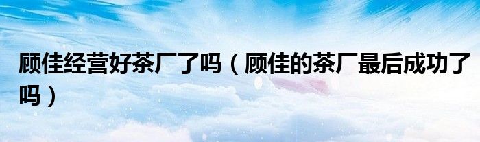 大家好,小安來(lái)為大家解答以上問(wèn)題。顧佳經(jīng)營(yíng)好茶廠了嗎,顧佳的茶廠最后成功了嗎很多人還不知道,現(xiàn)在讓我們一起來(lái)看看吧!