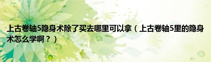 大家好,小安來為大家解答以上問題。上古卷軸5隱身術除了買去哪里可以拿,上古卷軸5里的隱身術怎么學啊?很多人還不知道,現在讓我們一起來看看吧!