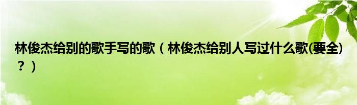 大家好,小安來為大家解答以上問題。林俊杰給別的歌手寫的歌,林俊杰給別人寫過什么歌(要全)?很多人還不知道,現(xiàn)在讓我們一起來看看吧!