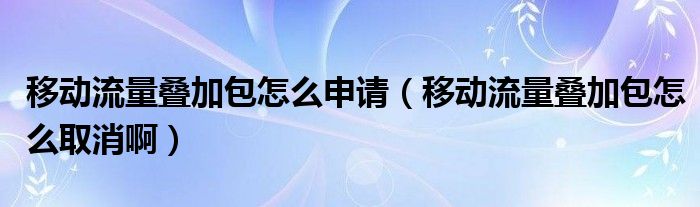 大家好,小安來(lái)為大家解答以上問(wèn)題。移動(dòng)流量疊加包怎么申請(qǐng),移動(dòng)流量疊加包怎么取消啊很多人還不知道,現(xiàn)在讓我們一起來(lái)看看吧!