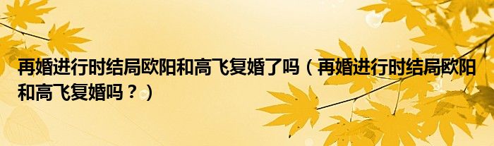 大家好,小安來為大家解答以上問題。再婚進行時結局歐陽和高飛復婚了嗎,再婚進行時結局歐陽和高飛復婚嗎?很多人還不知道,現在讓我們一起來看看吧!