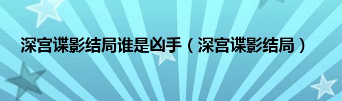 大家好,小安來為大家解答以上問題。深宮諜影結局誰是兇手,深宮諜影結局很多人還不知道,現在讓我們一起來看看吧!
