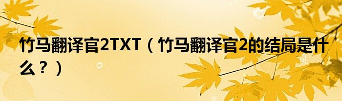 大家好,小安來為大家解答以上問題。竹馬翻譯官2TXT,竹馬翻譯官2的結局是什么?很多人還不知道,現在讓我們一起來看看吧!