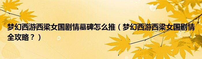 大家好,小安來為大家解答以上問題。夢幻西游西梁女國劇情墓碑怎么推,夢幻西游西梁女國劇情全攻略?很多人還不知道,現在讓我們一起來看看吧!