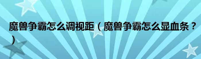 大家好,小安來為大家解答以上問題。魔獸爭霸怎么調視距,魔獸爭霸怎么顯血條?很多人還不知道,現在讓我們一起來看看吧!
