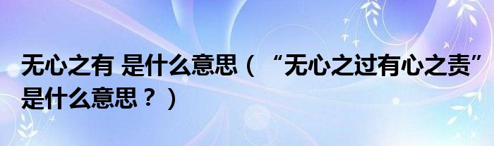 大家好,小安來為大家解答以上問題。無心之有 是什么意思,“無心之過有心之責”是什么意思?很多人還不知道,現(xiàn)在讓我們一起來看看吧!