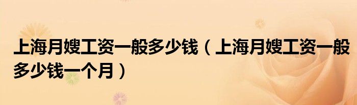 大家好,小安來為大家解答以上問題。上海月嫂工資一般多少錢,上海月嫂工資一般多少錢一個月很多人還不知道,現在讓我們一起來看看吧!