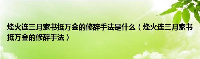 大家好,小安來為大家解答以上問題。烽火連三月家書抵萬金的修辭手法是什么,烽火連三月家書抵萬金的修辭手法很多人還不知道,現在讓我們一起來看看吧!