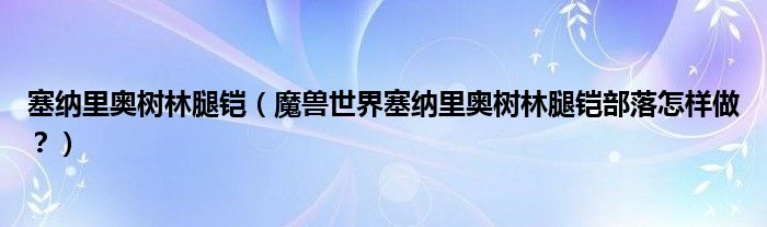 大家好,小安來為大家解答以上問題。塞納里奧樹林腿鎧,魔獸世界塞納里奧樹林腿鎧部落怎樣做?很多人還不知道,現在讓我們一起來看看吧!