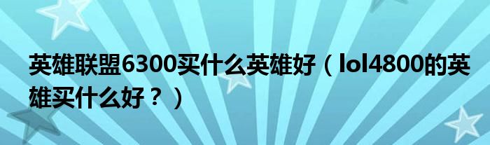 大家好,小安來為大家解答以上問題。英雄聯盟6300買什么英雄好,lol4800的英雄買什么好?很多人還不知道,現在讓我們一起來看看吧!
