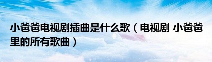 大家好,小安來為大家解答以上問題。小爸爸電視劇插曲是什么歌,電視劇 小爸爸 里的所有歌曲很多人還不知道,現在讓我們一起來看看吧!