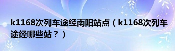 大家好,小安來為大家解答以上問題。k1168次列車途經南陽站點,k1168次列車途經哪些站?很多人還不知道,現在讓我們一起來看看吧!