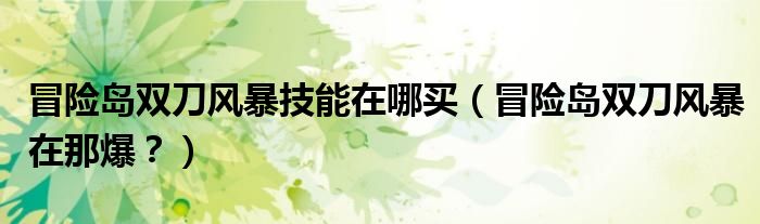 大家好,小安來為大家解答以上問題。冒險島雙刀風暴技能在哪買,冒險島雙刀風暴在那爆?很多人還不知道,現在讓我們一起來看看吧!