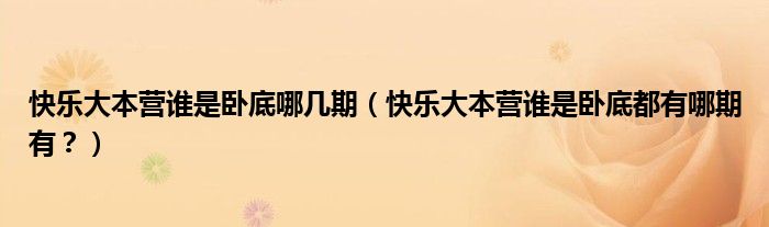 大家好,小安來為大家解答以上問題。快樂大本營誰是臥底哪幾期,快樂大本營誰是臥底都有哪期有?很多人還不知道,現在讓我們一起來看看吧!