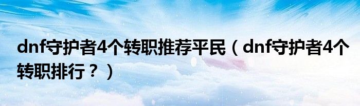 大家好,小安來為大家解答以上問題。dnf守護者4個轉職推薦平民,dnf守護者4個轉職排行?很多人還不知道,現在讓我們一起來看看吧!