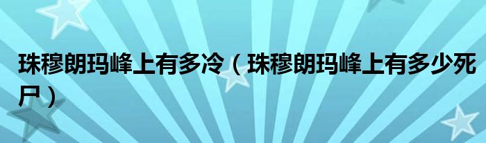 大家好,小安來為大家解答以上問題。珠穆朗瑪峰上有多冷,珠穆朗瑪峰上有多少死尸很多人還不知道,現在讓我們一起來看看吧!