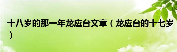 大家好,小安來為大家解答以上問題。十八歲的那一年龍應臺文章,龍應臺的十七歲很多人還不知道,現在讓我們一起來看看吧!