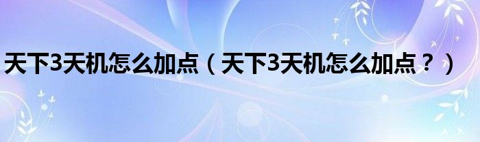 大家好,小安來為大家解答以上問題。天下3天機怎么加點,天下3天機怎么加點?很多人還不知道,現(xiàn)在讓我們一起來看看吧!