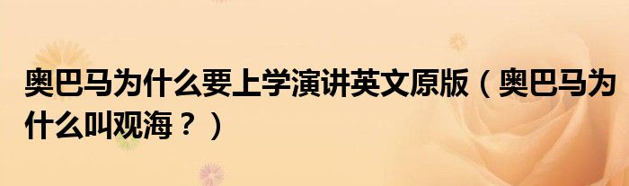 大家好,小安來為大家解答以上問題。奧巴馬為什么要上學演講英文原版,奧巴馬為什么叫觀海?很多人還不知道,現在讓我們一起來看看吧!