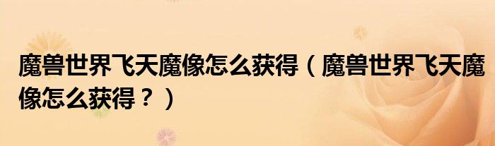 大家好,小安來為大家解答以上問題。魔獸世界飛天魔像怎么獲得,魔獸世界飛天魔像怎么獲得?很多人還不知道,現在讓我們一起來看看吧!