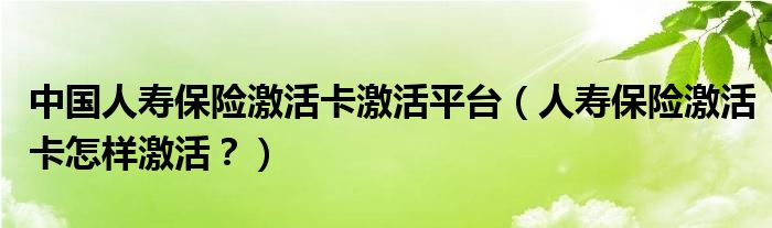 大家好,小安來為大家解答以上問題。中國人壽保險激活卡激活平臺,人壽保險激活卡怎樣激活?很多人還不知道,現在讓我們一起來看看吧!