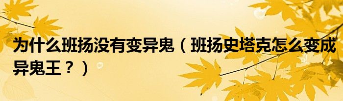 大家好,小安來為大家解答以上問題。為什么班揚沒有變異鬼,班揚史塔克怎么變成異鬼王?很多人還不知道,現在讓我們一起來看看吧!