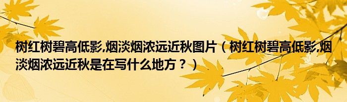 大家好,小安來為大家解答以上問題。樹紅樹碧高低影,煙淡煙濃遠近秋圖片,樹紅樹碧高低影,煙淡煙濃遠近秋是在寫什么地方?很多人還不知道,現在讓我們一起來看看吧!
