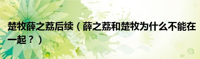 大家好,小安來為大家解答以上問題。楚牧薛之荔后續,薛之荔和楚牧為什么不能在一起?很多人還不知道,現在讓我們一起來看看吧!