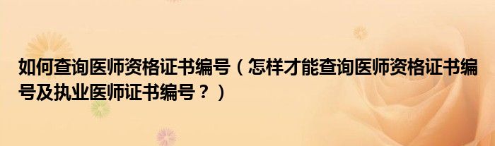 大家好,小安來為大家解答以上問題。如何查詢醫師資格證書編號,怎樣才能查詢醫師資格證書編號及執業醫師證書編號?很多人還不知道,現在讓我們一起來看看吧!