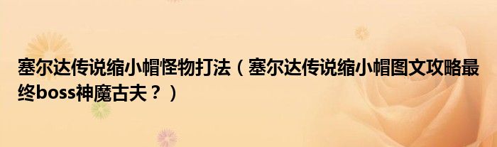 大家好,小安來為大家解答以上問題。塞爾達傳說縮小帽怪物打法,塞爾達傳說縮小帽圖文攻略最終boss神魔古夫?很多人還不知道,現在讓我們一起來看看吧!